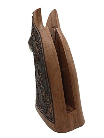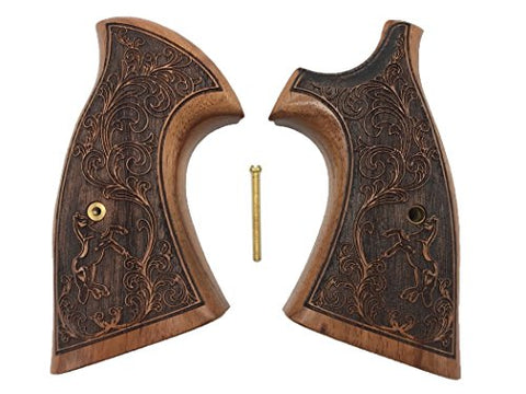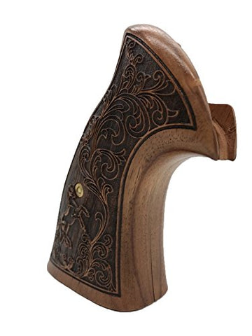 handicraftgrips KSW71## New Smith & Wesson K/L S&W K L Frame Square Butt Revolver Grips Laser Hard Wood Finger Groove Checkered Open Back Handmade Silver Medallions Sport for Men Birthday Gift