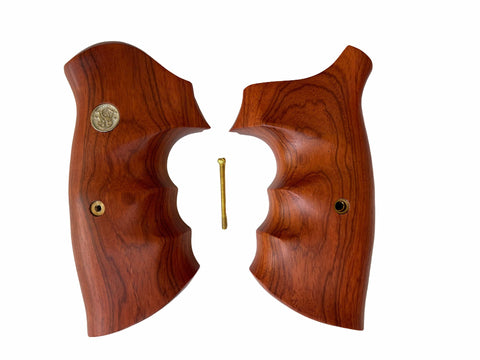 handicraftgrips NRW04## New Smith & Wesson S&W N Frame Round Butt Grips Smooth Hardwood Wood Finger Groove Open Back Silver Medallions Handmade Handcraft Birthday Sport for Men