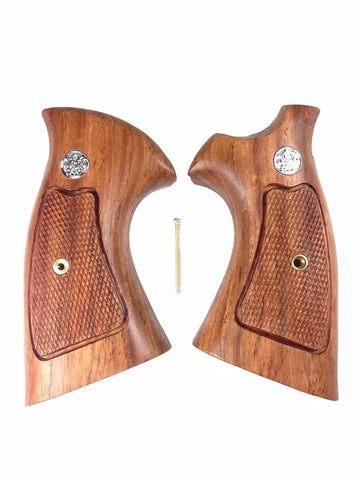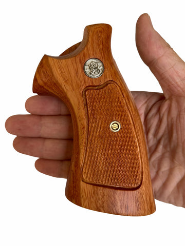 handicraftgrips New Smith & Wesson S&W N Frame Square Butt Grips Checkered Open Back Silver MedallionsHardwood Wood Handmade #Nsw25