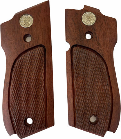 New Smith and Wesson S&W Model 59 459 659 9 Mm Grips Hardwood Wood Checkered Handmade Handcraft Gift Sport for Men Silver Medallions #S5W05