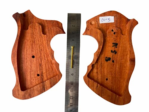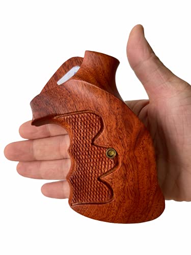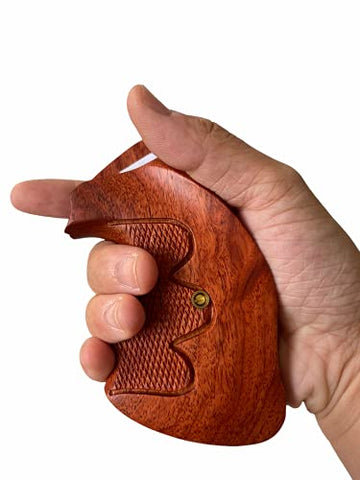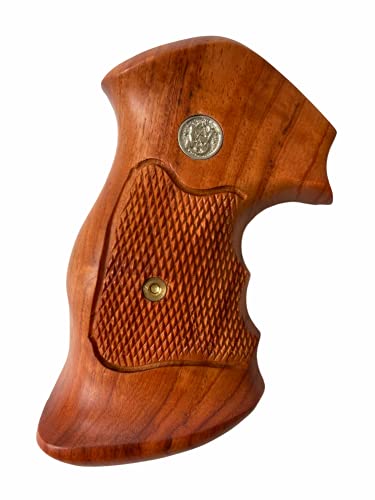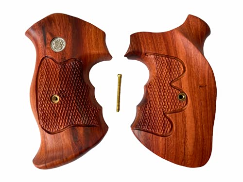 handicraftgrips New Smith & Wesson S&W N Frame Square Butt Grips Silver Medallions Checkered Finger Groove Hardwood Hard Wood Handmade Beautiful Sport for Men Birthday Newyear Nsw29#2