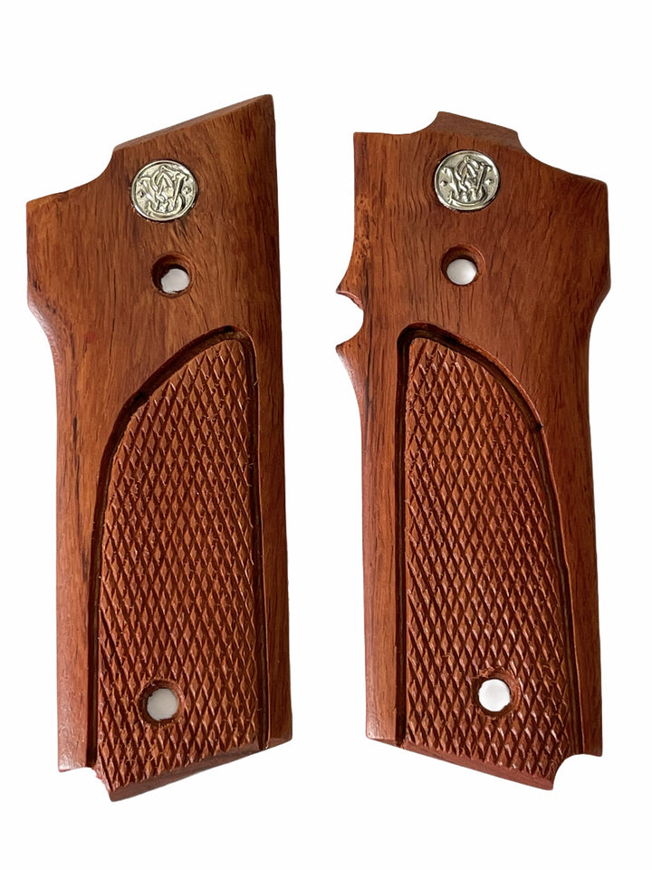 New Smith and Wesson S&W Model 59 459 659 9 Mm Grips Hardwood Wood Checkered Handmade Handcraft Silver Medallions Birthday Newyear Sport for Men Man #S5W07