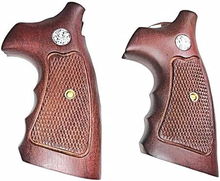 New Smith & Wesson S&W N Frame Round Butt Grips Smooth Silver Medallions Hardwood Finger Groove Open Back Birthday Newyear Sport for Men for him Special Design Handcraft #NRW05