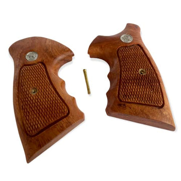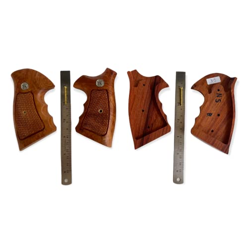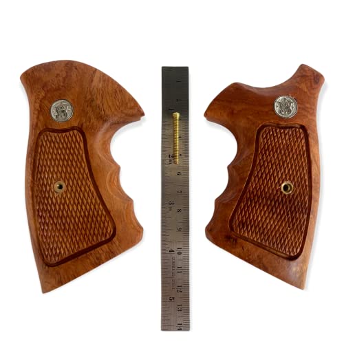 New Smith & Wesson S&W N Frame Square Butt Grips Silver Medallions Checkered Finger Groove Hardwood Hard Wood Handmade Beautiful Sport for Men Birthday Newyear Christmas Gift #Nsw33
