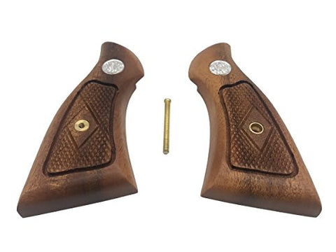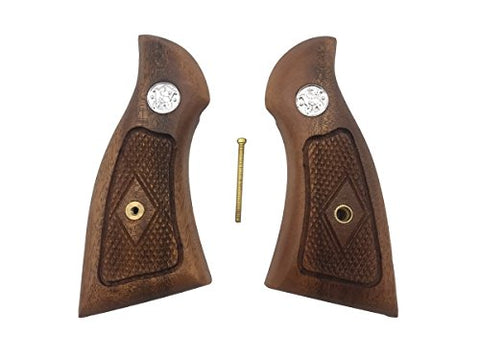 handicraftgrips KSW43## New Smith & Wesson K/L S&W K L Frame Square Butt Revolver Grips Hardwood Hard Wood Open Back Checkered Handmade Handcraft Silver Medallions Sport for Men Birthday Gift