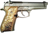 BFG02 ## New Beretta92 Beretta 92 92F 92G 92FS FS 92SB 96 M992 M9 Full Size Grips aluminum gold plated Hand Engraved Handcraft Birthday Fathers day Christmas Newyear Gift Sport Men By handicraftgrips