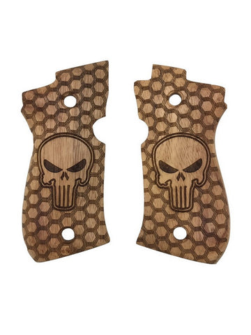 handicraftgrips B8W08## New Beretta 81 and 84 F/fs .380 81F 81FS 84F 84FS Grips Hard Wood Laser Logo Checkered Handmade Handraft Gift Birthday Christmas Newyear Sport for Men Skull Special Design