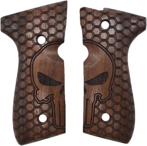 handicraftgrips BFW30## New Beretta92 Beretta 92 92F 92G 92FS FS 92SB 96 M992 M9 Full Size Grips Laser Logo Hard Wood Handmade Handcraft Gift Birthday Christmas Newyear Sport Men Skull Design