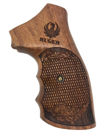 handicraftgrips GPW28## New Ruger GP100 Super Redhawk Grips Checkered Laser Flower Engraved Hard Wood Finger Groove Handmade Birthday Newyear Christmas Gift Sport for Men Fathers Day Handcraft By