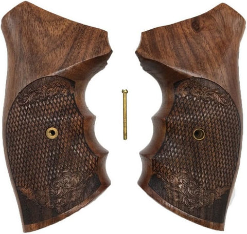 handicraftgrips GPW37## New Ruger GP100 Super Redhawk Grips Checkered Laser Flower Engraved Hard Wood Finger Groove Handmade Birthday Newyear Christmas Gift Sport for Men Fathers Day Handcraft