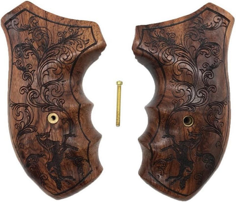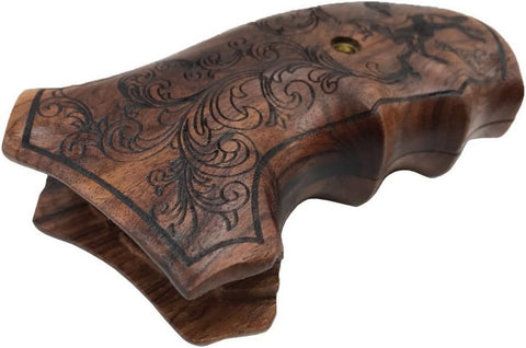 handicraftgrips GPW61## New Ruger GP100 Super Redhawk Grips Checkered Laser Flower Engraved Hard Wood Finger Groove Handmade Birthday Newyear Christmas Gift Sport for Men Fathers Day Handcraft