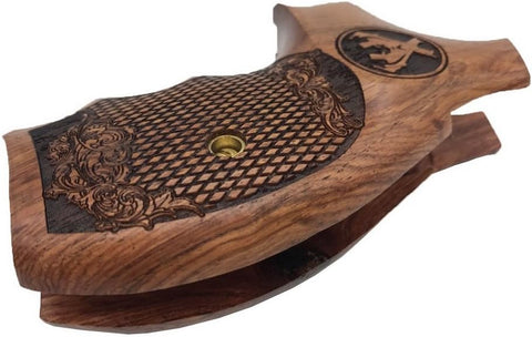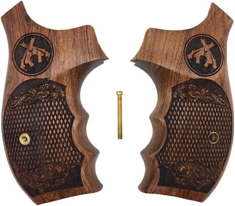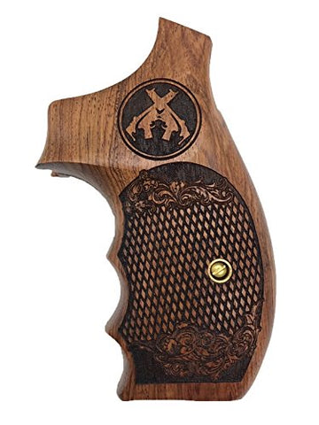 handicraftgrips KRW63## New Smith & Wesson S&W K/L K L Frame Round Butt Grips Hard Wood Laser Logo Checkered Open Back Silver Medallions Handmade Sport Men Birthday Newyear Christmas