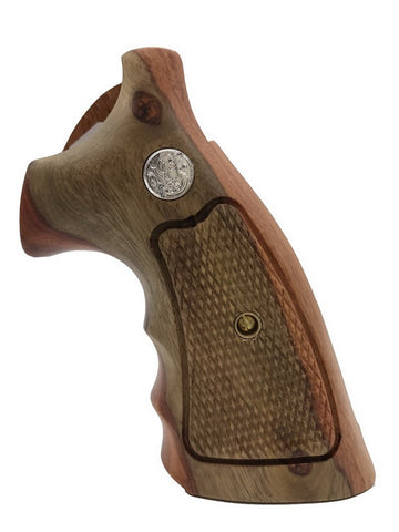 handicraftgrips Ksw32## New Smith & Wesson K/L S&W K L Frame Square Butt Revolver Grips Hardwood Hard Wood Open Back Checkered Finger Groove Handcraft Silver Medallions Sport Men Birthday Gift