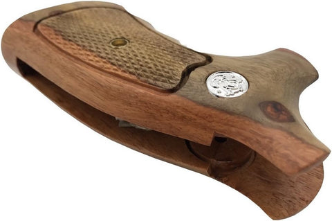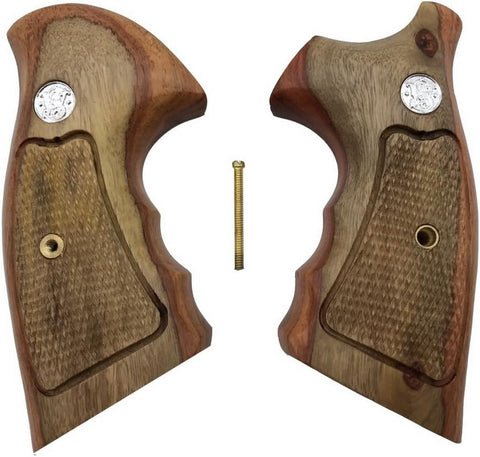 handicraftgrips Ksw32## New Smith & Wesson K/L S&W K L Frame Square Butt Revolver Grips Hardwood Hard Wood Open Back Checkered Finger Groove Handcraft Silver Medallions Sport Men Birthday Gift