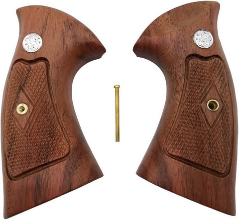 handicraftgrips Ksw46## New Smith & Wesson K/L S&W K L Frame Square Butt Revolver Grips Hardwood Hard Wood Open Back Checkered Handmade Handcraft Silver Medallions Sport for Men Birthday Gift