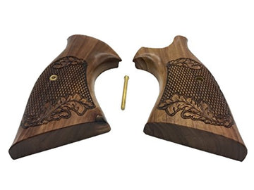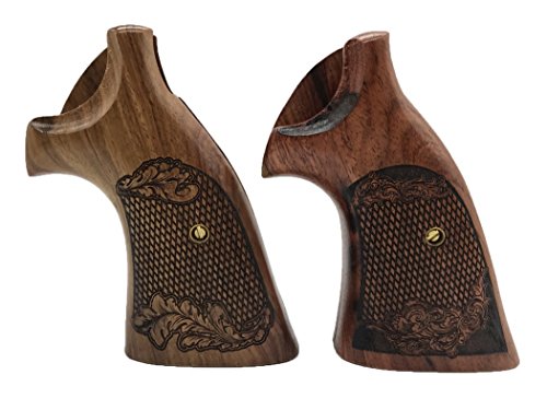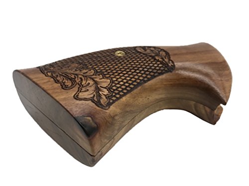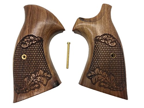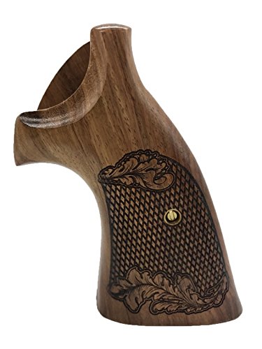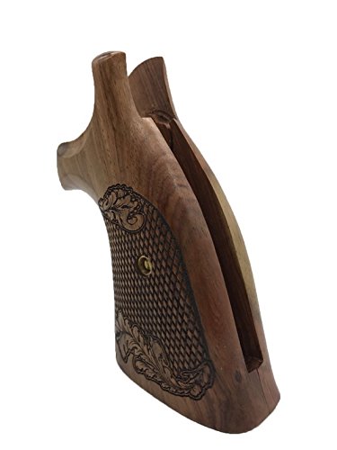 handicraftgrips KSW66## New Smith & Wesson K/L S&W K L Frame Square Butt Revolver Grips Laser Hard Wood Finger Groove Checkered Open Back Handmade Silver Medallions Sport for Men Birthday Gift