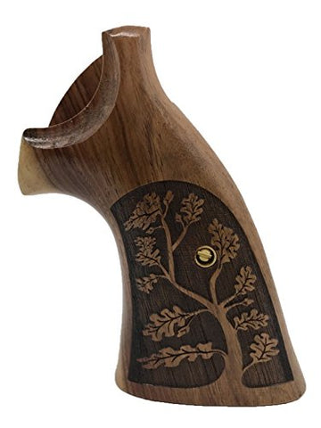 handicraftgrips KSW68## New Smith & Wesson K/L S&W K L Frame Square Butt Revolver Grips Laser Hard Wood Finger Groove Checkered Open Back Handmade Silver Medallions Sport for Men Birthday Gift