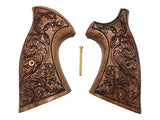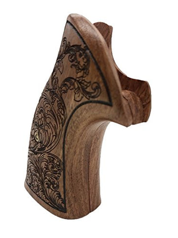 handicraftgrips KSW73## New Smith & Wesson K/L S&W K L Frame Square Butt Revolver Grips Laser Hard Wood Finger Groove Checkered Open Back Handmade Silver Medallions Sport for Men Birthday Gift