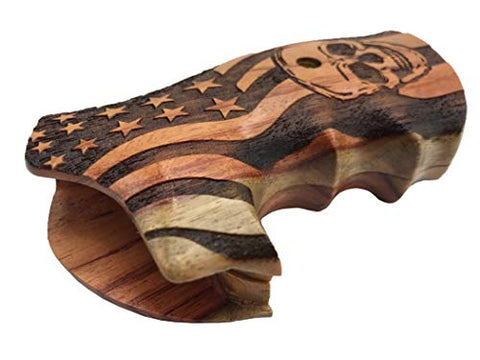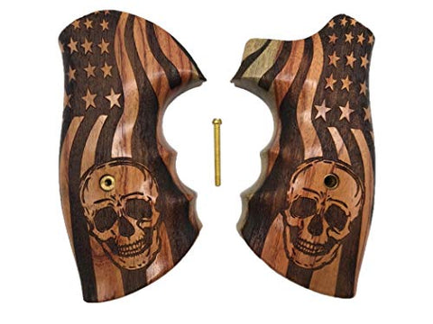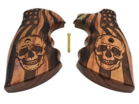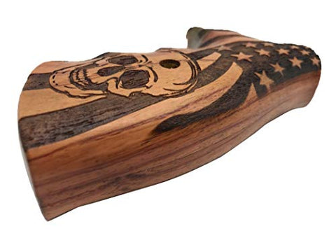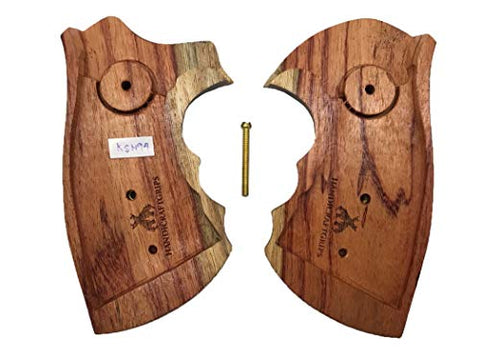 handicraftgrips KSW94 Smith & Wesson K/L S&W K L Frame Square Butt Revolver Grips Laser Hard Wood Finger Groove Checkered Open Back Handmade Silver Medallions Sport for Men Birthday Gift