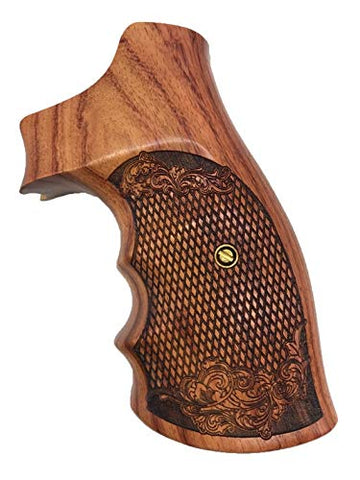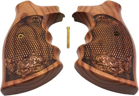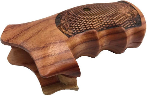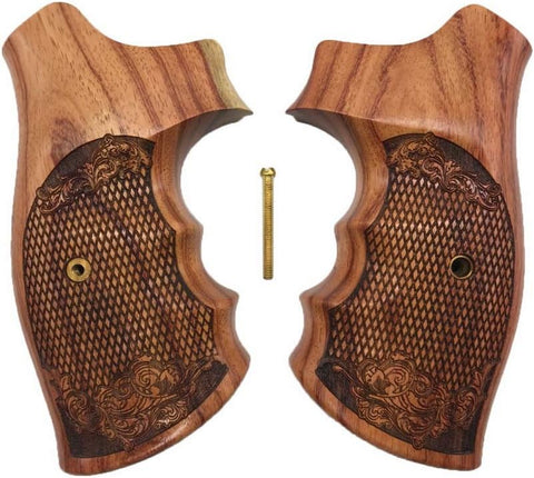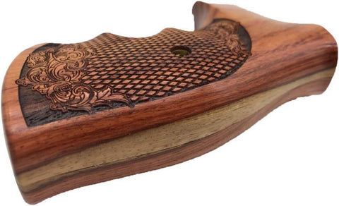 handicraftgrips KSW97 Smith & Wesson K/L S&W K L Frame Square Butt Revolver Grips Laser Hard Wood Finger Groove Checkered Open Back Handmade Silver Medallions Sport for Men Birthday Gift