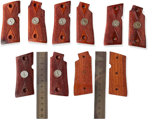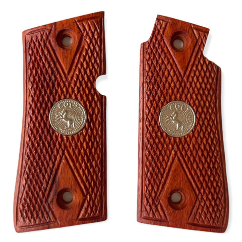handicraftgrips New Grips for Colt Mustang Checkered Silver Medallions pocketlite Pistol Hardwood Handmade Grips #MTW01