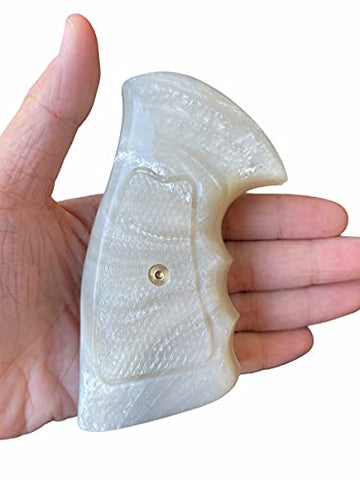 handicraftgrips New Rossi Small Frame Square Butt Revolver Grips 67 68 69 71 351 511 515 518 720 971 972 Finger Groove Checkered White Pearl Resin Polymer Polyester Handmade Birthday Newyear RSR03