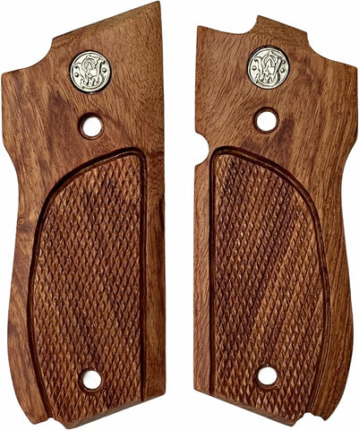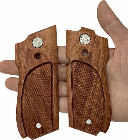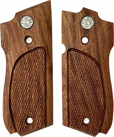 handicraftgrips New Smith and Wesson S&W Model 39, 52, 439, 539, 639, 9 Mm, Round Butt Grips Hardwood Wood Checkered Handmade Handcraft Gift Sport for Men Skull Birthday Newyear Christmas S3W13