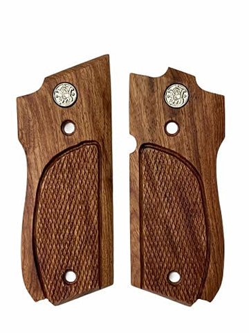 handicraftgrips New Smith and Wesson S&W Model 39, 52, 439, 539, 639, 9 Mm, Round Butt Grips Hardwood Wood Checkered Handmade Handcraft Gift Sport for Men Skull Birthday Newyear Christmas S3W13