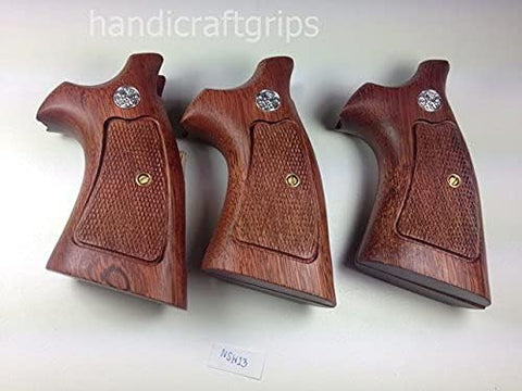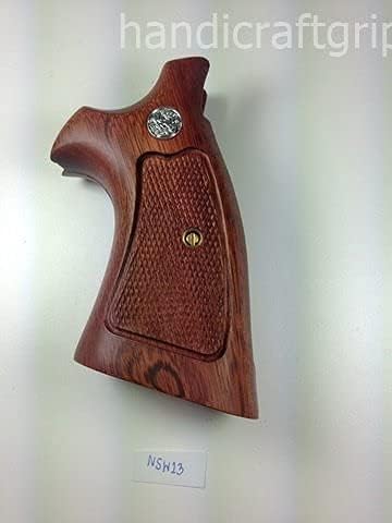handicraftgrips New Smith & Wesson N Frame Square Butt Grips Checkered Hardwood Open Back Finger Groove #Nsw13