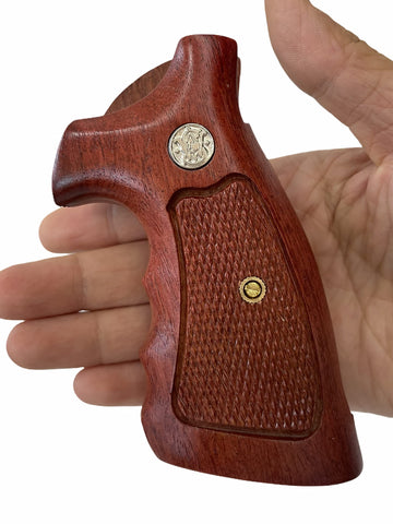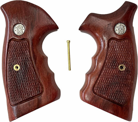 handicraftgrips New Smith & Wesson S&W N Frame Square Butt Grips Silver Medallions Checkered Finger Groove Hardwood Hard Wood Handmade Beautiful Sport for Men Birthday Newyear Nsw31