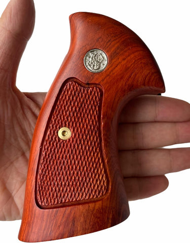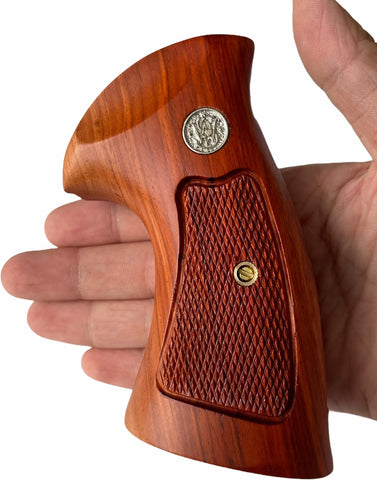 handicraftgrips New Smith & Wesson S&W N Frame Square Butt Grips Silver Medallions Checkered Finger Groove Hardwood Hard Wood Handmade Beautiful Sport for Men Birthday Newyear Nsw36