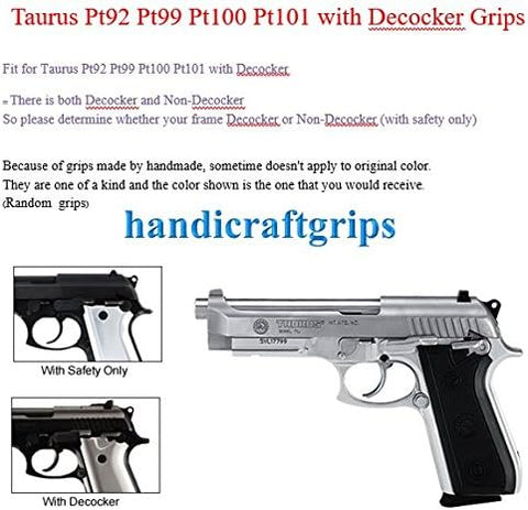 Condition: New Material: Polymer Resin 1 Set = Right and Left side of grips These grips fit for Taurus PT-92, PT-99, PT100, PT101 Decocker Only fit for Decocker models