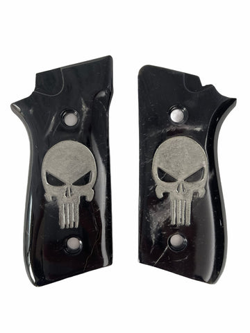 handicraftgrips New Taurus Pt92 Pt99 Pt100 Pt101 Decocker PT pt 92 99 100 101 Black Pearl Color Polymer Resin Lazer Skull Grips Handmade #Tpr01