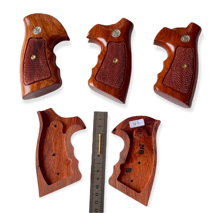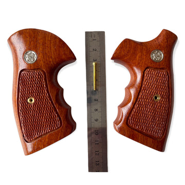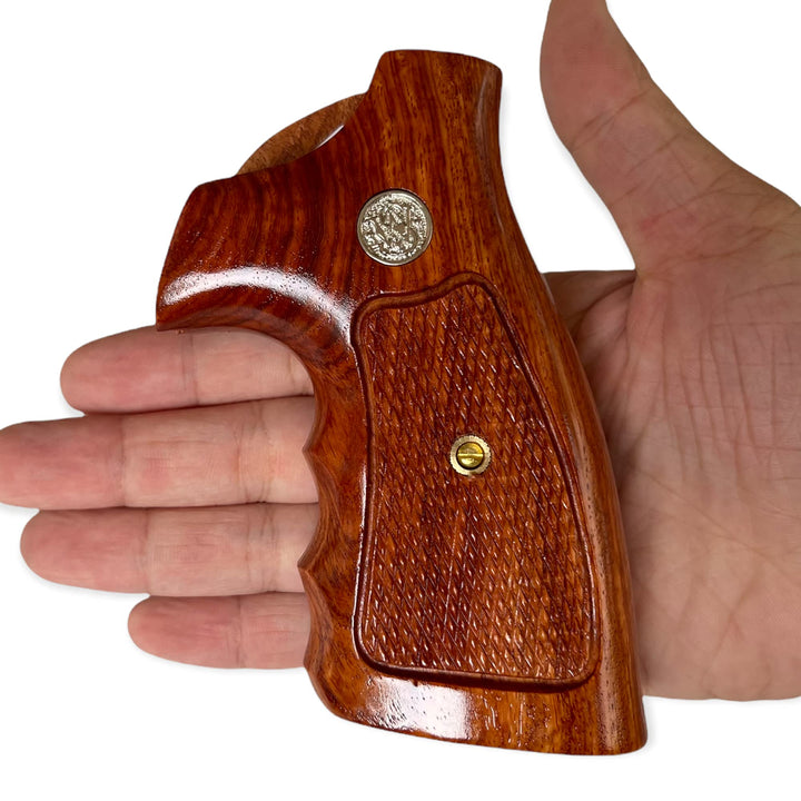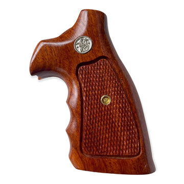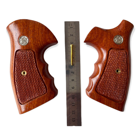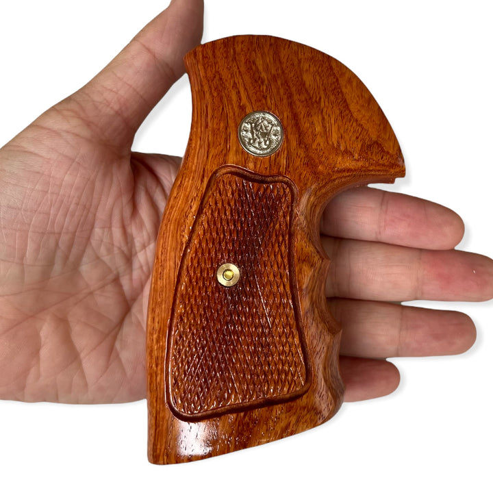 handicraftgrips NRW06## New Smith & Wesson S&W N Frame Round Butt Grips Checkered Silver Medallions Hardwood Finger Groove Handmade Handcraft Birthday Newyear Sport for Men