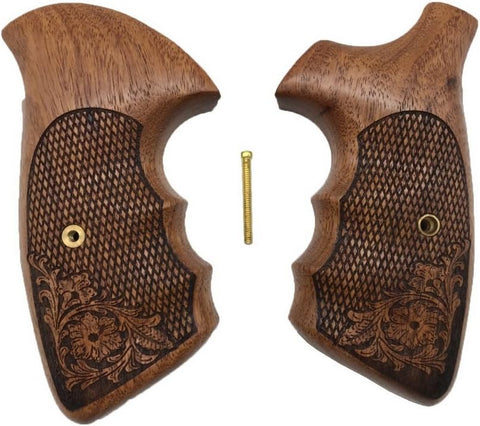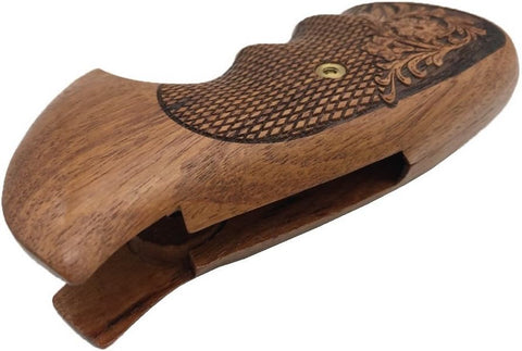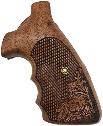 handicraftgrips NRW30## New Smith & Wesson S&W N Frame Round Butt Grips 22 25 29 325 327 329 520 610 625 627 629 Hard Wood Laser Logo Engraved Checkered Finger Groove Handcraft Special Birthday Gift