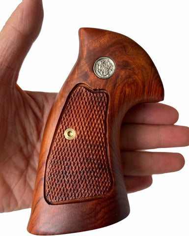 handicraftgrips Nsw14## New Smith & Wesson S&W N Frame Square Butt Grips Silver Medallions Checkered Finger Groove Checkered Hardwood Wood Handmade Beautiful Sport for Men Birthday