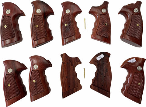 Condition: New Material: Hard wood 1 Set = Right and Left side of grips with Screws Fit for Model: 20, 21, 23, 24, 25*, 26, 27, 28, 29*, 57, 58, 520*, 610*, 624, .44 Classic Hunter *= There is both a round butt and square butt version for this model. So please determine whether your pistol is round or square butt.