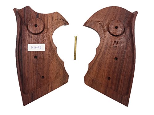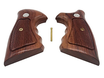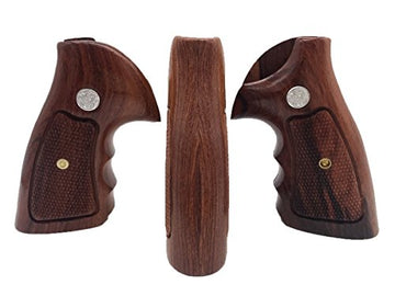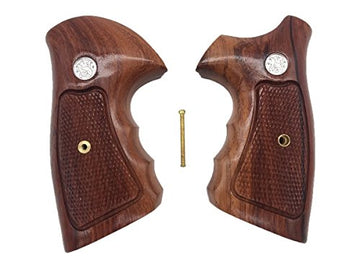 handicraftgrips NSW46## New Smith & Wesson S&W N Frame Square Butt Grips Silver Medallions Checkered Finger Groove Hardwood Wood Handmade Handcraft Sport for Men Birthday New Year