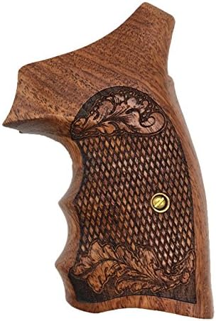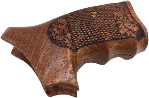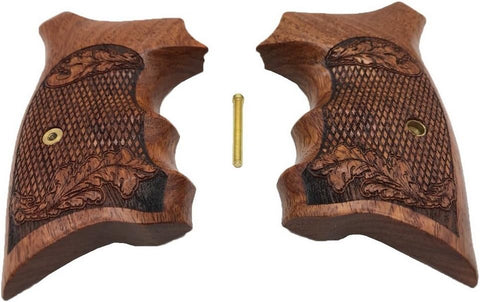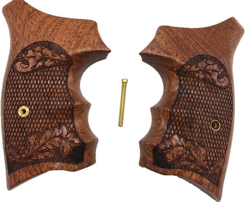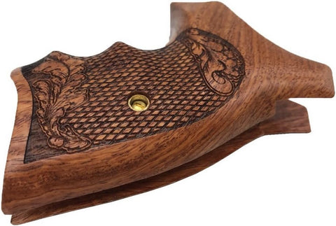 handicraftgrips NSW57## New Smith & Wesson S&W N Frame Square Butt Grips Laser Logo Engraved Silver Medallions Checkered Finger Groove Hard Wood Handmade Handcraft Birthday New Year