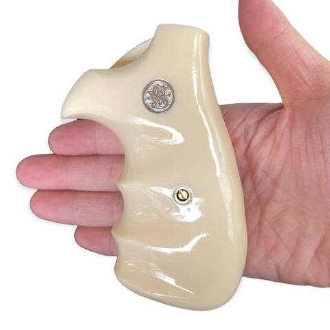 handicraftgrips Smith & Wesson K/l Frame Round Butt Revolver Grips White Ivory Color Polymer Smooth Resin Finger Groove Smooth Silver Medallions Handmade #KRR02