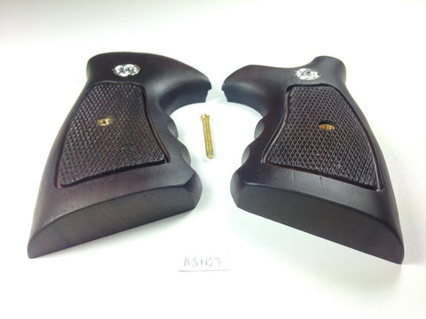 Handmade Grips Compatible with S&W N Frame Square Butt Grips 20 21 23 24 25 26 27 28 29 57 58 520 610 624 .44 Classic Hunter Silver Medallions Checkered Hard Wood Handcraft Birthday Gift #NSW27