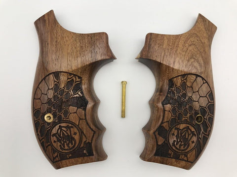 KRW61 ## New Smith & Wesson S&W K/L K L Frame Round Butt Grips Hard Wood Laser Logo Checkered Open Back Silver Medallions Handmade Sport Men Birthday Newyear Christmas Fathers day Gift Handicraftgrips