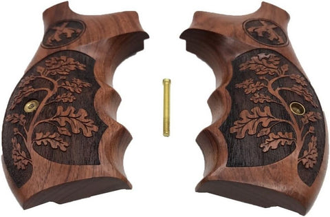 KRW65 ## New Smith & Wesson S&W K/L K L Frame Round Butt Grips Hard Wood Laser Logo Checkered Open Back Silver Medallions Handmade Sport Men Birthday Newyear Christmas Fathers day Gift Handicraftgrips