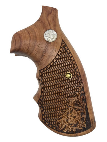 Ksw53 ## New Smith & Wesson K/L S&W K L Frame Square Butt Revolver Grips Laser Hard Wood Finger Groove Checkered Open Back Handmade Silver Medallions Sport for Men Birthday Gift by Handicraftgrips