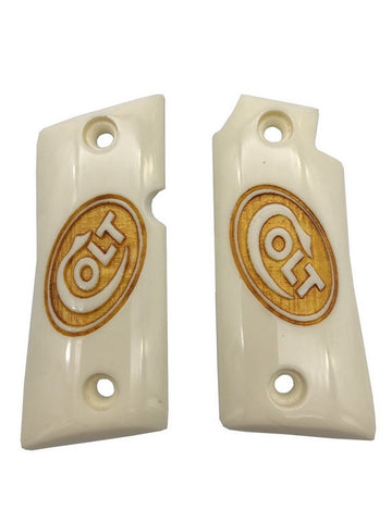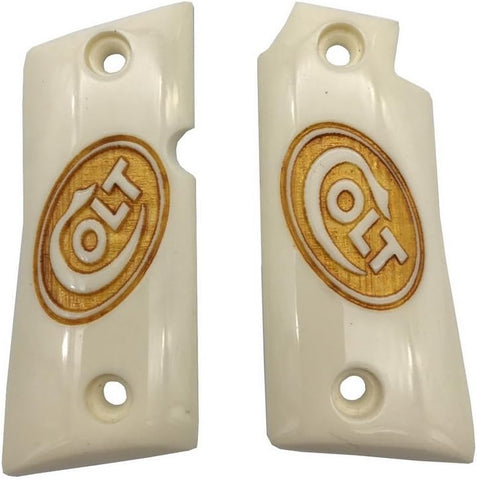 MTR01 ## New Grips for Colt Mustang Checkered pocketlite Pistol White Ivory Resin Polymer Laser Logo Handmade Handcraft beautiful Nice Birthday Gift Sport For Men Man by Handicraftgrips