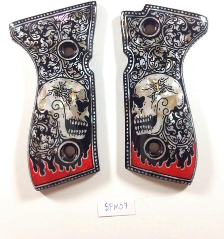New Beretta 92 92F 92G 92FS FS 92SB 96 M992 M9 Full Size Grips FULL SIZE Hardwood Wood Smooth Mother of Pearl Inlay Handmade #BFM07