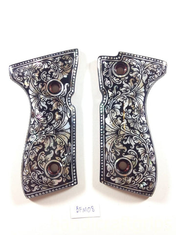 New Beretta 92 92F 92G 92FS FS 92SB 96 M992 M9 Full Size Grips FULL SIZE Hardwood Wood Smooth Mother of Pearl Inlay Handmade #BFM08