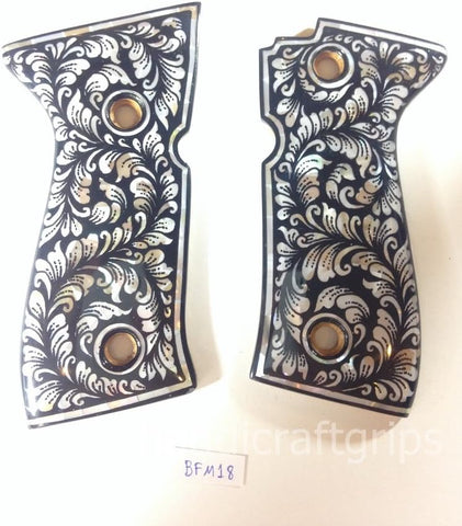New Beretta 92 92F 92G 92FS FS 92SB 96 M992 M9 Full Size Grips FULL SIZE Hardwood Wood Smooth Mother of Pearl Inlay Handmade #BFM18