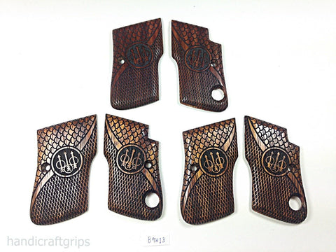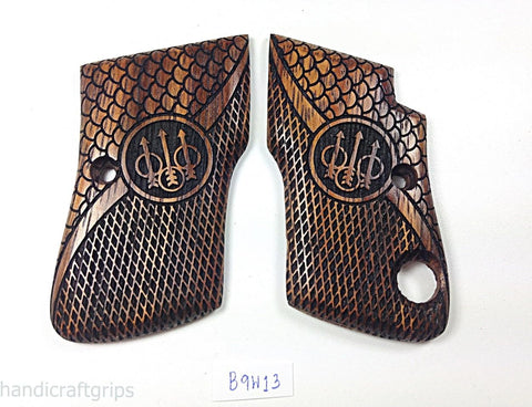 New Beretta 950 950B 950BS .22 Short .25 ACP Grips grips Checkered hardwood Hard Wood Cut Out for Safety with safety cut Lazer handmade beautiful Nice Gift Sport For Men Man #B9W13