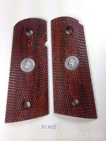 New Colt 1911 1991 Compact Size Kimber Clones Springfield Hardwood Wood Checkered Silver Medallions Handmade #Acw05